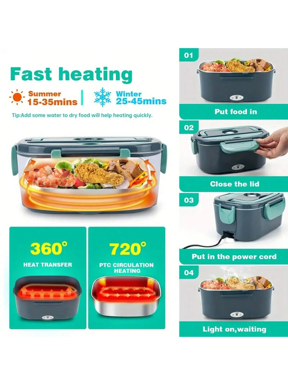 - 【SAFETY MATERIAL】Our Heated Lunch Box prioritizes your health and the environment. It features a food grade stainless steel inner food container. The upgraded heating system and high-quality shell ensure durability and cost-effectiveness. The dishwasher-safe design and stainless-steel tray preserves the taste of your meals.
