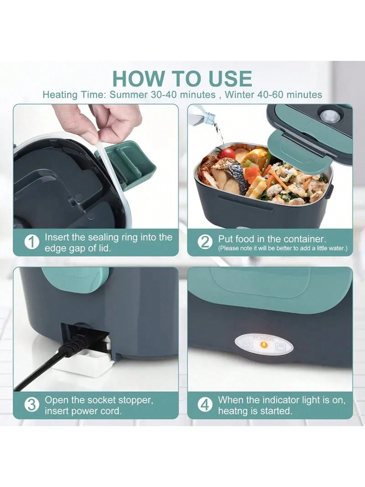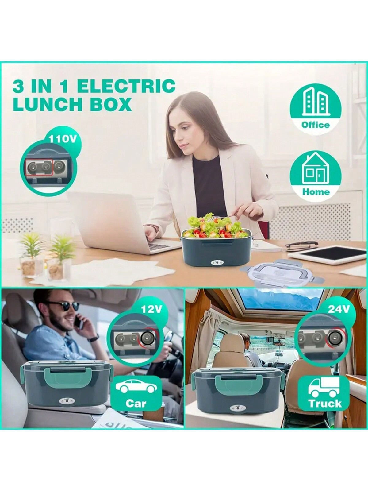 - 【3 IN 1 ELECTRIC LUNCH BOX】 No Need to looking for a microwave and wait in line for heating, now simply plug in and heat up your food with the electric heating lunch box at home/office or in car/truck using the 12V/24V/110V power cables. Keep constant heating when plugging in, always serving you a hot meal.