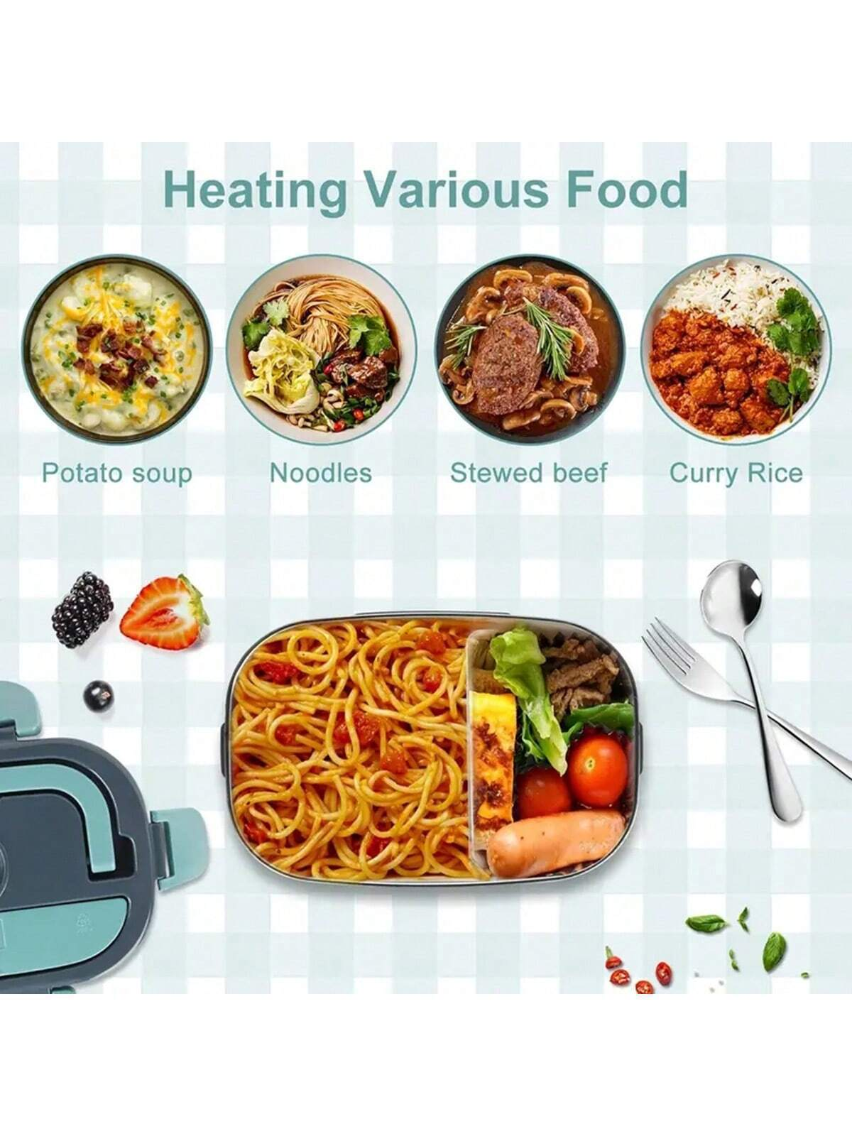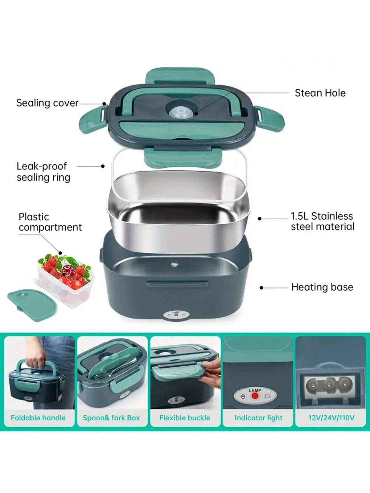 - 【1.5L CAPACITY+0.45L COMPARTMENT】With 1.5L capacity 304 stainless steel container. Enjoy soups and chowders with confidence, thanks to the secure and leakproof lid of our Electric Lunch Box. With the included 0.45L compartment, it enables you to keep various food items separate and organized. You can conveniently store your utensils in the small lid compartment.